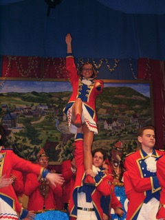 Prinzessin Dagmar I. zu sehen auf dem Foto mit Michael Fuhrmann in der klassischen Hebefigur „Kölsche Sitz“ auf einer Sitzung im Jahr 2004