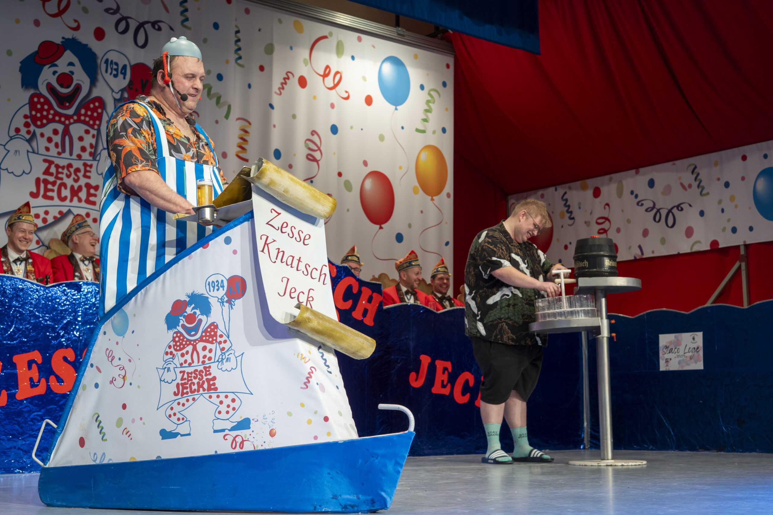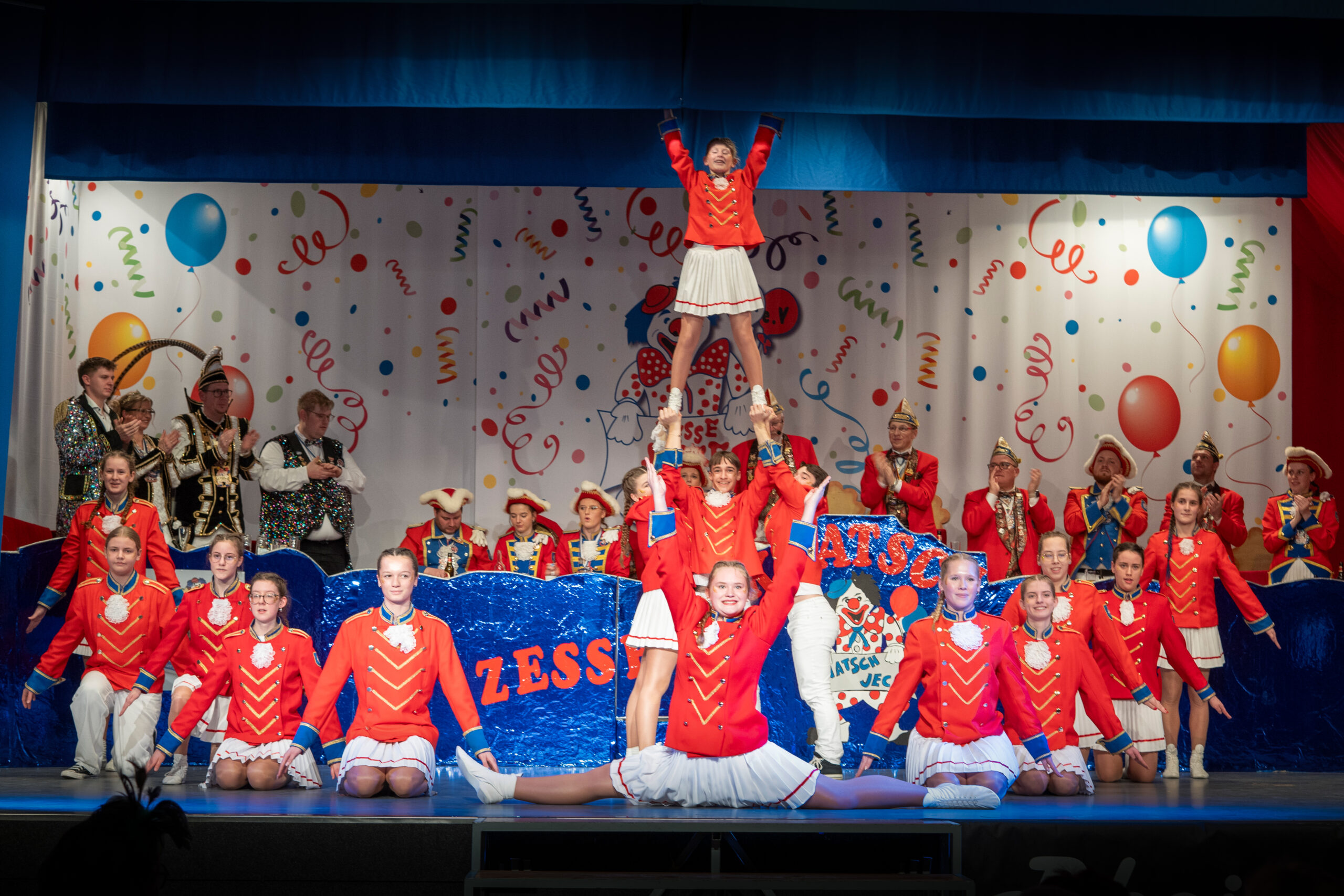 Auch bei der 2.Prunksitzung ist wieder ein großes Team der KG Zesse Jecke rund um ihren Vorstand und ihre Abteilungen aber auch von vielen freiwilligen Närrinnen und Narren hinter den Kulissen unterwegs um einen reibungslosen Ablauf für alle jecken Gäste zu garantieren.